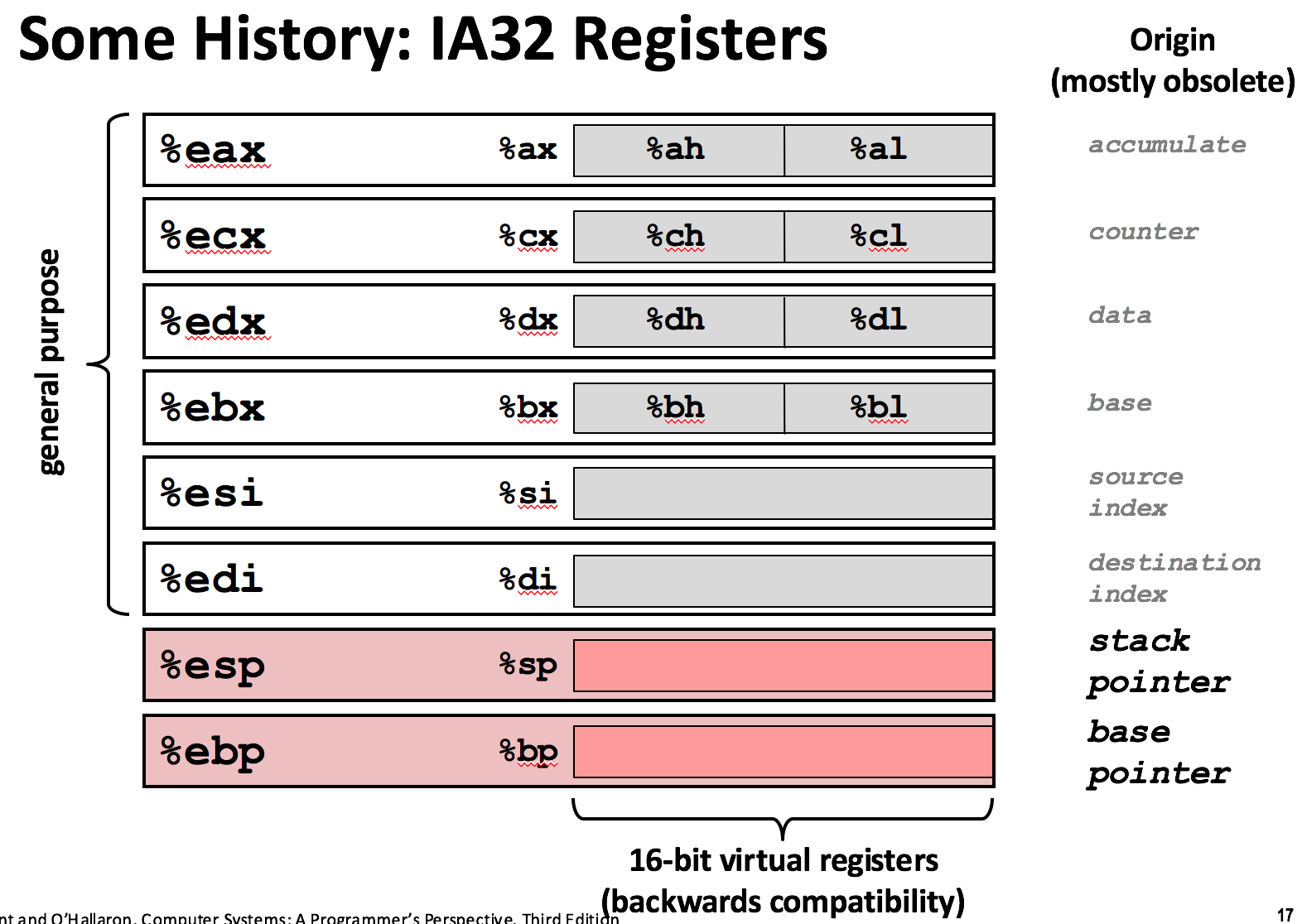 - D(Rb, Ri, s) : Mem(Reg[Rb] + Reg[Ri] * s) : 比例变址寻址。如: